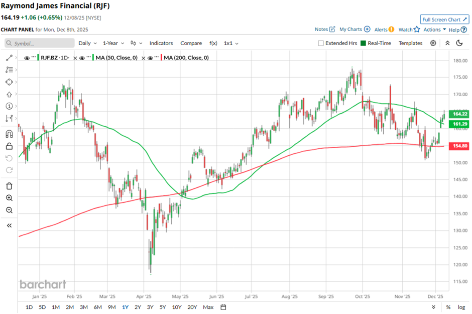 Raymond James Financial reported stronger Q4 2025 results on Oct. 22, including capital markets net revenues increasing to $513 million from $483 million and adjusted net income rising to $635 million ($3.11 per share) from $621 million ($2.95). Investor sentiment was further boosted by a rebound in global dealmaking and management’s optimistic outlook for fiscal 2026, supported by record client assets and a strong investment banking pipeline. Nevertheless, the stock fell marginally the next day.