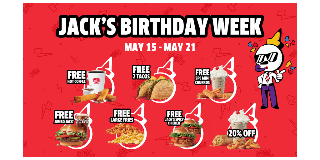 Jack in the Box Inc. (NASDAQ: JACK) announced today a week of offers discounts in celebration of the birthday of their mascot, Jack Box. The iconic leader is celebrating his birthday this May 16, but a day is in no way enough celebration. Instead, get ready for Jack’s week-long extravaganza: a week of offers from May 15 to May 21 available on the Jack mobile app to all Jack Pack® members, new and existing.