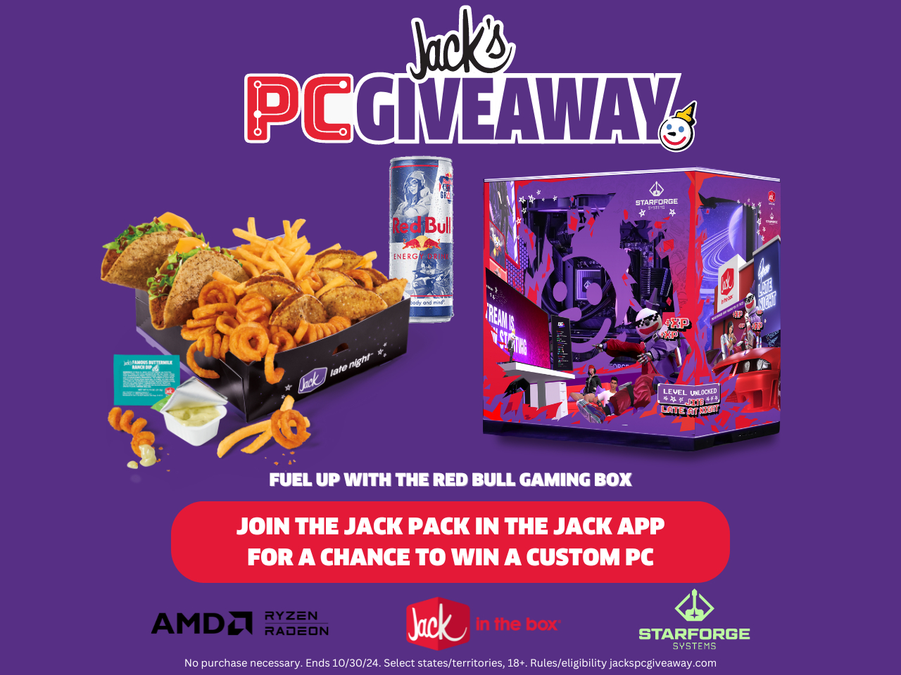 Get ready, gamers! Jack in the Box (NASDAQ: JACK) is hosting an epic custom PC giveaway designed by Starforge and powered by AMD—and you heard it here first! To enter, simply download the Jack in the Box app and join the Jack Pack loyalty program from Sunday, September 29 to Wednesday, October 30. Keep an eye out for a pop-up in the app to secure your chance to level up your gaming setup!